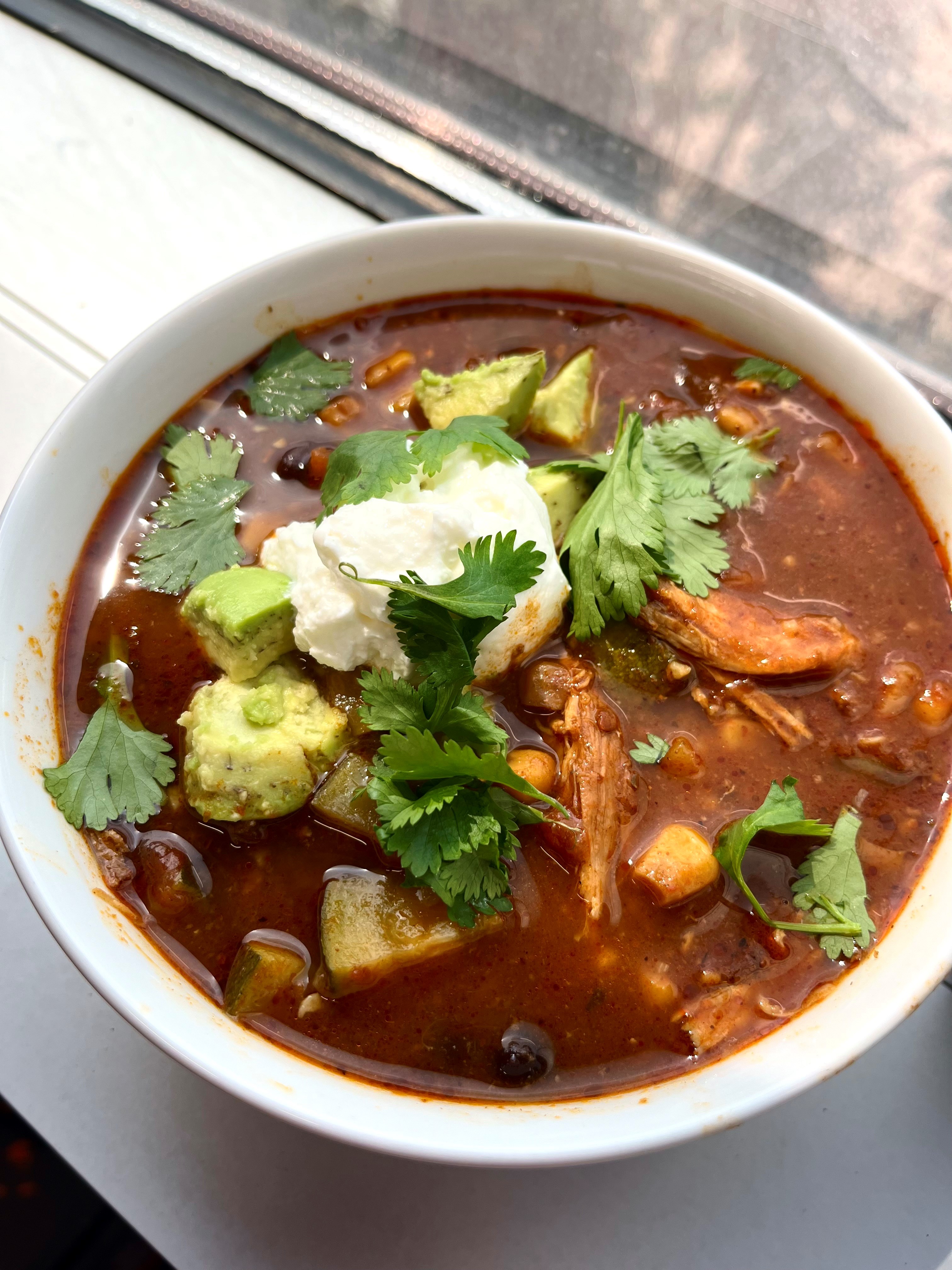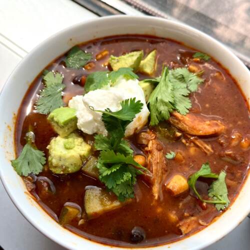 - Serve in bowls and top with cheese, avocado, and cilantro, if desired. Enjoy!